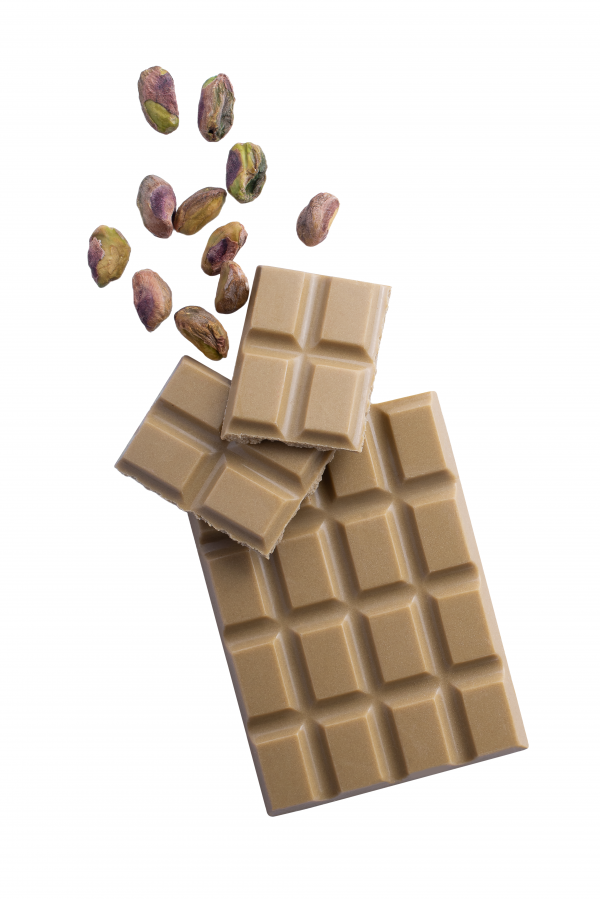 Soft and crunchy, pistachio chocolate with caramelized whole pistachios will make you ask for more. With low share of natural sugars, it will bring you satisfaction without any regrets!